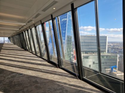 The building’s tapered shape means that each office floor is ‘stepped back’ and 750 millimetres narrower than the one below it, providing office space in varied sizes to suit the needs of different businesses. With almost all the building’s service functions housed in the North Core, the offices have the additional advantage of fine unobstructed views across the City, the Thames and beyond.
